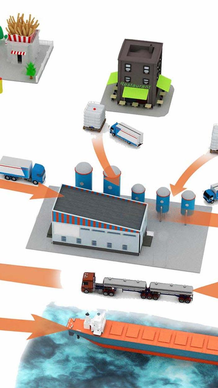 - Tarjoaa maksuttomia keräyspalveluita ravintoloille ja kahviloille käytettyjen uppopaistorasvojen ja kahvinporojen kierrätykseen ja jatkojalostukseen.