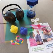Kirjaston lainattavissa lukutukikasseissa on erilaisia keskittymisen apuvälineitä kokeiltavaksi. Käsille tekemistä tarjoavat stressipallot, terapiaketjut tai muut pienet esineet. Ajastimen tai tiimalasin avulla voi itselleen asettaa tavoiteajan lukemiselle; lyhyt hetkikin voi olla tarpeeksi.