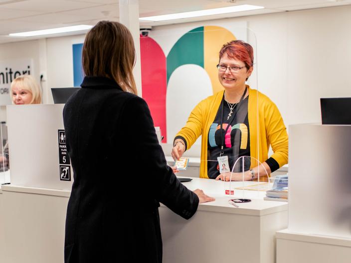 Asiakaspalvelusta voit ostaa muun muassa liikuntarannekkeita ja kausikortteja. -
