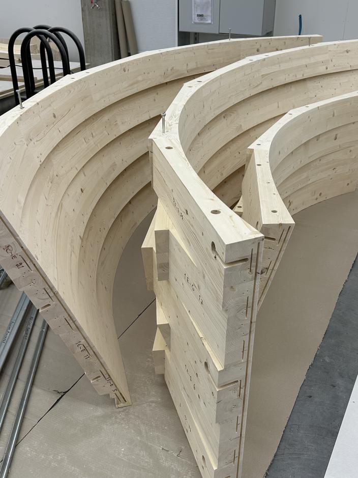 Salien sisäverhouslevyt tehdään Puuseppien modernissa tehdashallissa Raisiossa. Tämä nopeuttaa työmaalla tehtävää asennustyötä ja parantaa rakennusosien mittatarkkuutta. Levyt asennetaan kesällä 2025.