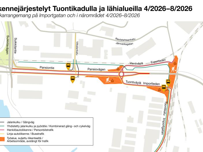 Urakan työskentelyalueet ohitetaan kiertoreiteillä. Ajankohtaiset liikennejärjestelyt löytyvät alla olevan linkin takaa.