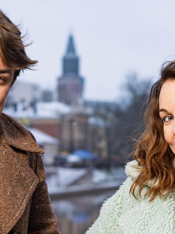 Turun Kaupunginteatteriin viimeisimpänä kiinnitetyt näyttelijät Asta Sveholm ja Sami Lalou poseeraavat tottuneesti Teatterisillalla. Siltaa tuleekin ylitettyä usein, sillä työmatka teatteriin kulkee molemmilla keskustasta jokivartta pitkin.