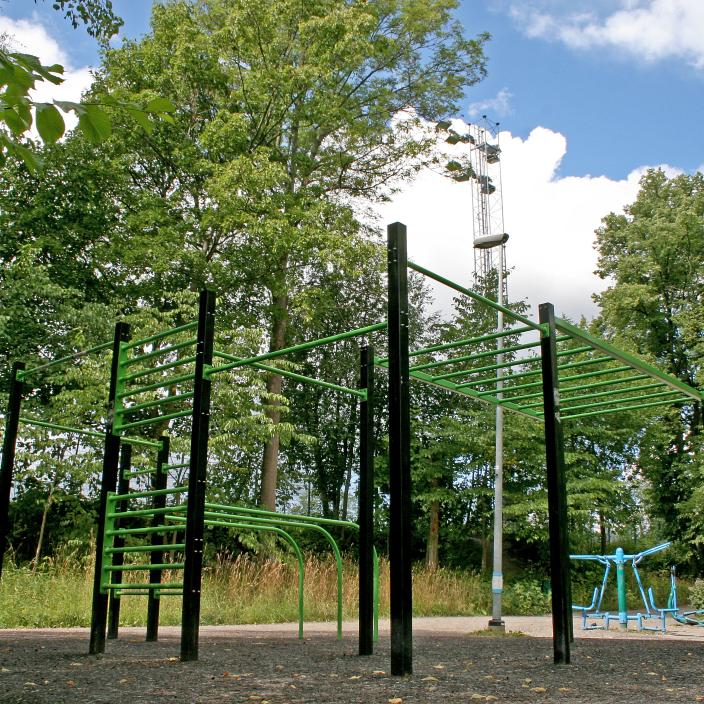 Urheilupuiston ulkokuntoilulaitteet ovat vapaassa käytössä.