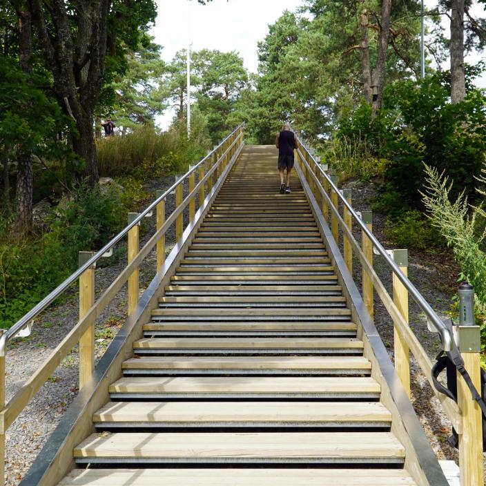 Kuntoportaiden pituus on 32 metriä ja niissä on 65 askelmaa.