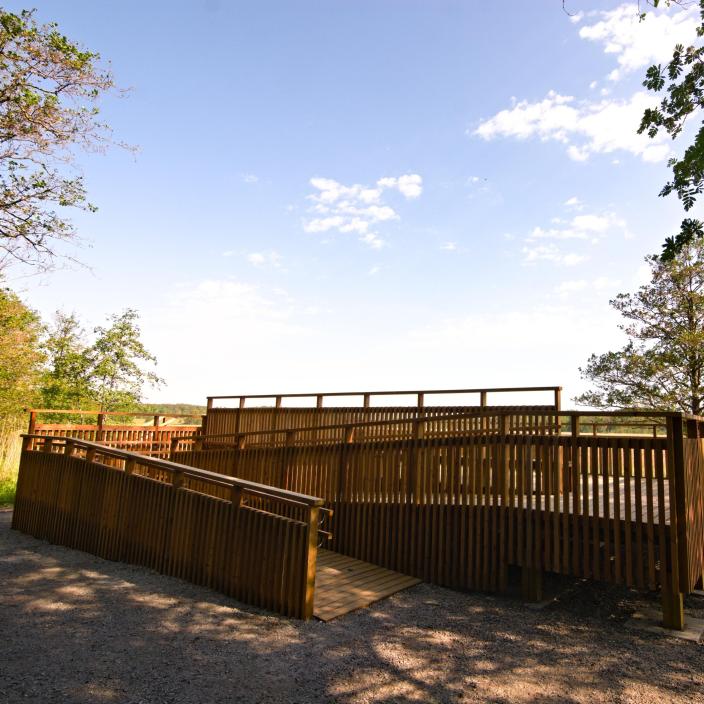 Hirvensalon Friskalanlahdessa sijaitsevat vierekkäin lintutorni sekä esteetön lintulava.